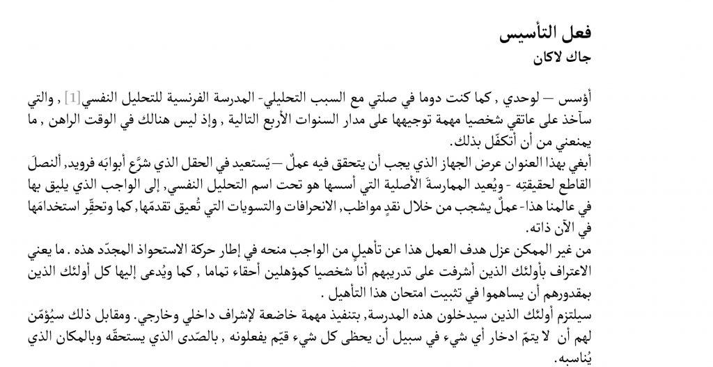 هنالك مكتبة فعالّة وتتم اعمال ترجمة لنصوص، كتابة مقالات، واصدار لكتب. بالاضافة، يتم اصدار مجلة في التحليل النفسي بعنوان “لاكان et” (خط لاكان)، تتضمن مقالات وشهادات محلية وكذلك من المدرسة حول العالم، “مدن تحليلية“، مجموعة مفتوحة.