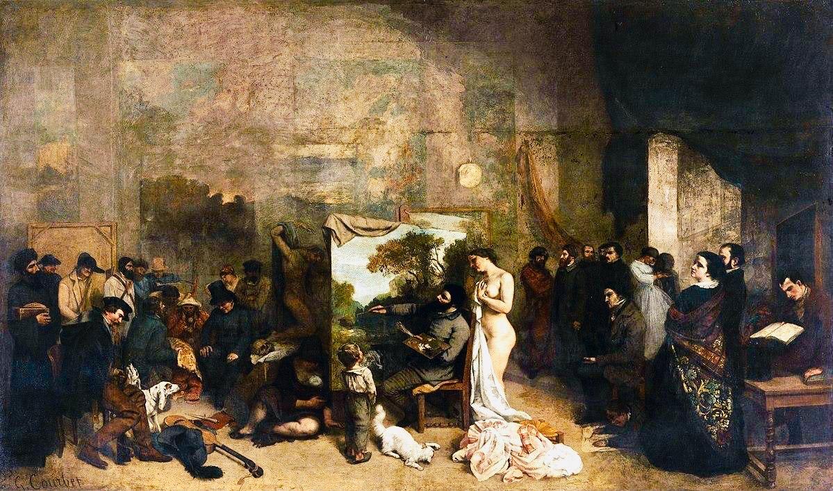 גוסטאב קורבה – “אטלייה האמן”: אלגוריה ממשית (Allégorie Réelle) שמסכמת שבע שנים של החיים האמנותיים (והמוסריים) שלי בין 1854-1855״.