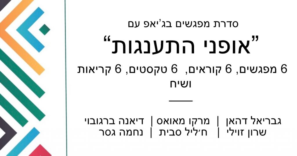 המפגשים יתקיימו בימי חמישי בשעה 20:30, בהנחיית קלאודיה אידן וחמוטל שפירא, בבית הג׳יאפ – רח׳ שוקן 27, קומה 5, ת״א, בעלות של 240 ש״ח עבור כל הסדרה.