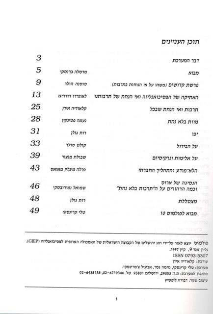 כמות של פולמוס 9, קיץ 1997 - ספרות מקצועית