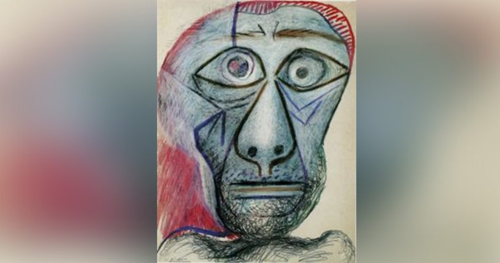 התמונה היא הפורטרט העצמי האחרון של פיקאסו בחייו, בעודו בן 90, וכותרתו “Self Portrait Facing Death”, משנת 1972.