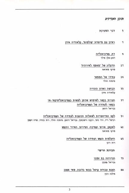פולמוס מספר 19, קיץ 2004, עתידה של הפסיכואנליזה - ספרות מקצועית quantity