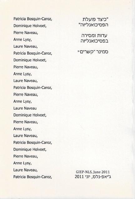 How Psychoanalysis Works (כיצד פועלת הפסיכואנליזה), לקראת כנס ה-NLS 2011, לונדון