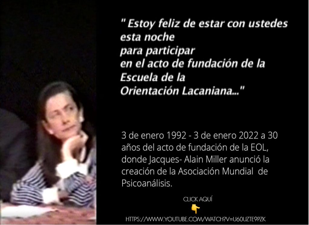 עם אקט הייסוד של ערב זה, יש תנועה אנליטית בינלאומית באוריינטציה לאקאניאנית, שיש לה משקל, כדי להתעמת עם סטיית האוריינטציה של הפסיכואנליזה.